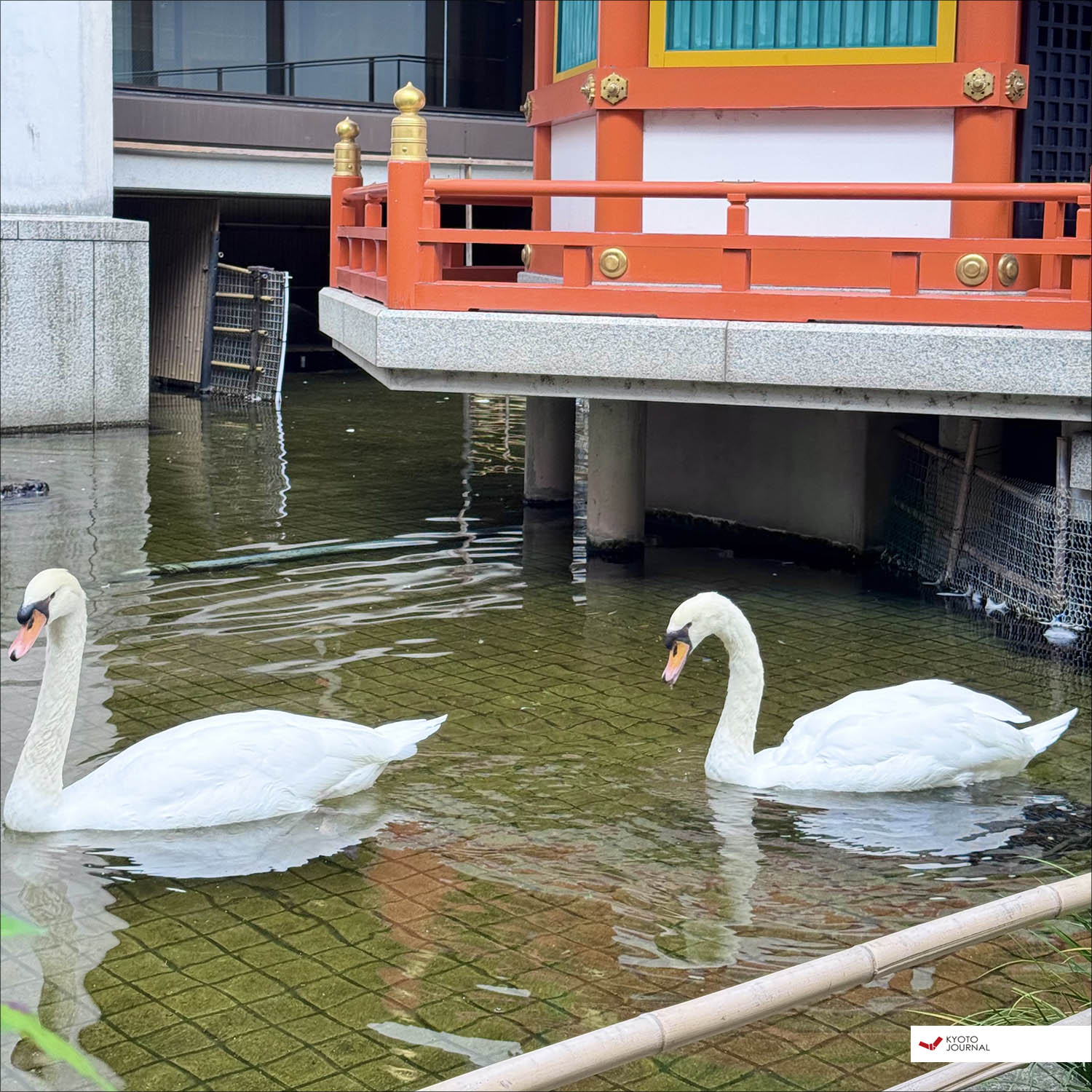 In the pond behind the temple, you can even see swans, a rare sight in the city center.